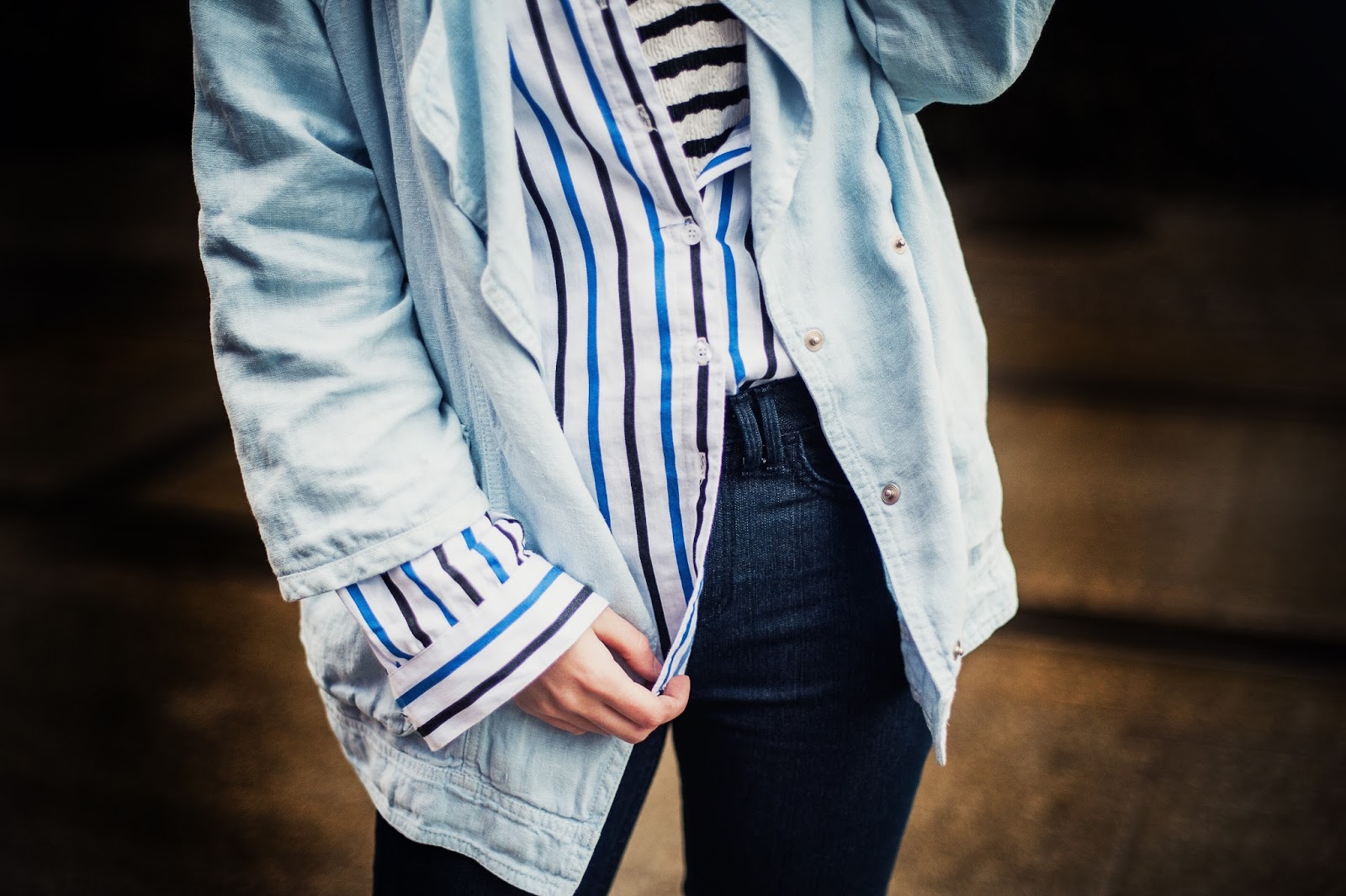 elementem jest pasiasta bluzka, na którą także założyłam koszulę w paski! Jako